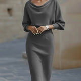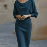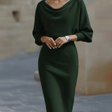 Abito midi drappeggiato con maniche a pipistrello