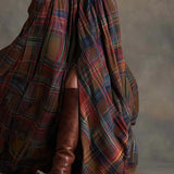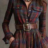abito lungo retrò con risvolti e quadri
